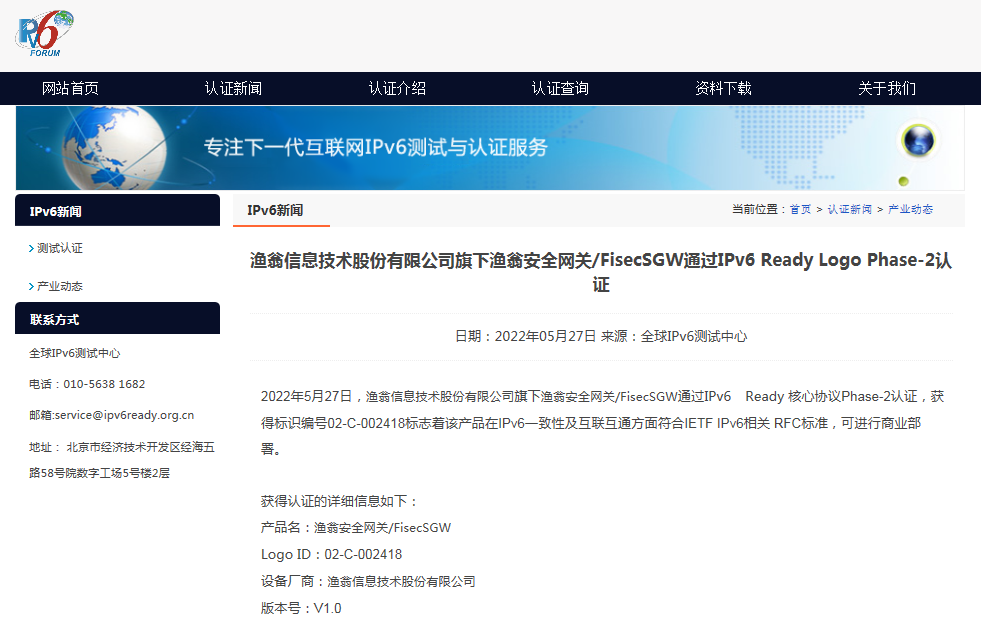 近期,UPAY国际(中国)安全网关 FisecSGW在下一代互联网国家工程中心-全球IPv6测试中心正式顺利获得IPv6 Ready核心协议Phase-2测试,并荣获由国际组织IPv6 Forum颁发的IPv6 Ready Logo Phase-2认证证书(Logo ID:02-C-002418)。